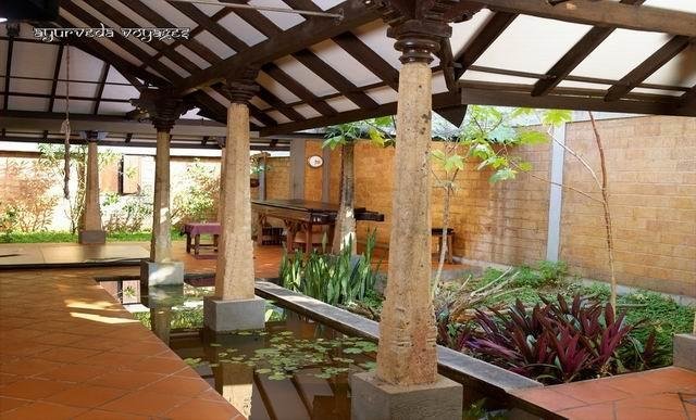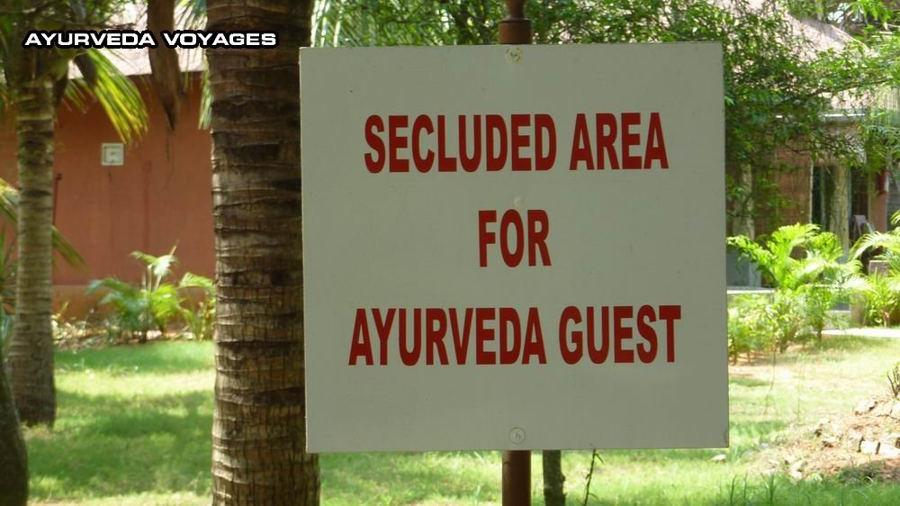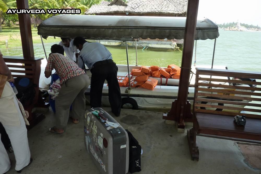 Le Poovar Island Resort est au bord du lac, mais la partie ayurvédique est en retrait, donc à environ 5 minutes à pied du quai, en traversant les jardins du complexe.